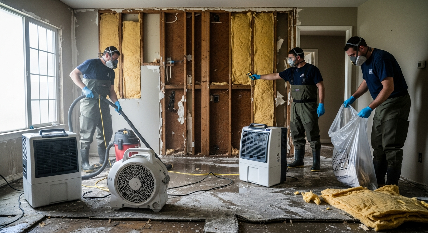Oluvannyuma lw’okuggyamu amazzi, ekikolwa ekiddirira kwe kukaliza ekifo okukakasa nti tewakyali kifufu kyonna. Obufufu obungi buyinza okuvaako ekikulukutu okukula mangu, ekirimu ebyetaago by’obulamu. Abakugu bakozesa ebyuma ebikaliza empewo, abawagala ab’amaanyi, n’ebyuma ebiggyamu obufufu mu bbanga okukakasa nti buli kitundu kikazibwa obulungi. Kino kiyamba okukuuma obuzimbe bw’ennyumba n’okwewala obuwuka obuyinza okujja oluvannyuma. Okukola obulungi ku bufufu kiyamba okuzzaawo ennyumba mu mbeera ey’obukuumi.